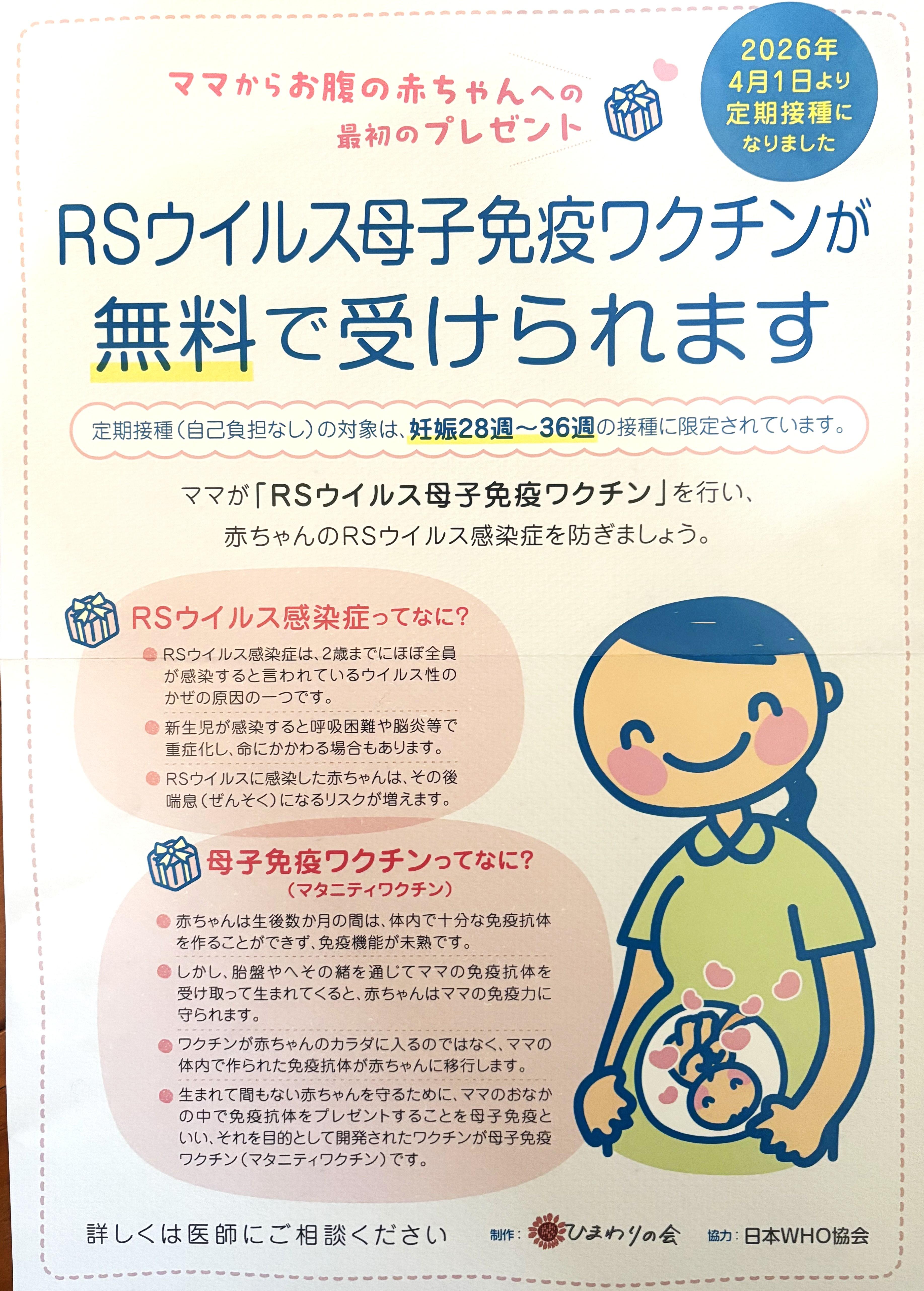 2026年4月1日より RSウイルス母子免疫ワクチンが【無料】なります